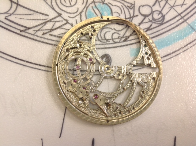 The movement will be finished with a nice floral pattern all done by hand, engraved and skeletonized. The main plate will be finished with a nice guilloché by hand and black PVD coated. For the colors of the movement my client is not yet 100% sure about it, but this can be decided as well at a later point, because the colors will be applied after the whole craftsmenship work is done.