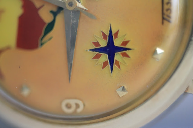 Watches with cloisonné émail dials made by Cadran Stern belong to the most sought after timepieces for every high-class collector, as this superb Tissot "The Americas". There is as well no difference in the quality of the émail used for this Tissot and f.ex the famous "Caravelle" by Rolex or the Patek Philippe 605HU. The only difference is probably the price, the Rolex "Caravelle" and Patek Philippe 605HU are into the 7 digits whereas this Tissot "The Americas" is available into the 5 digits at my boutique